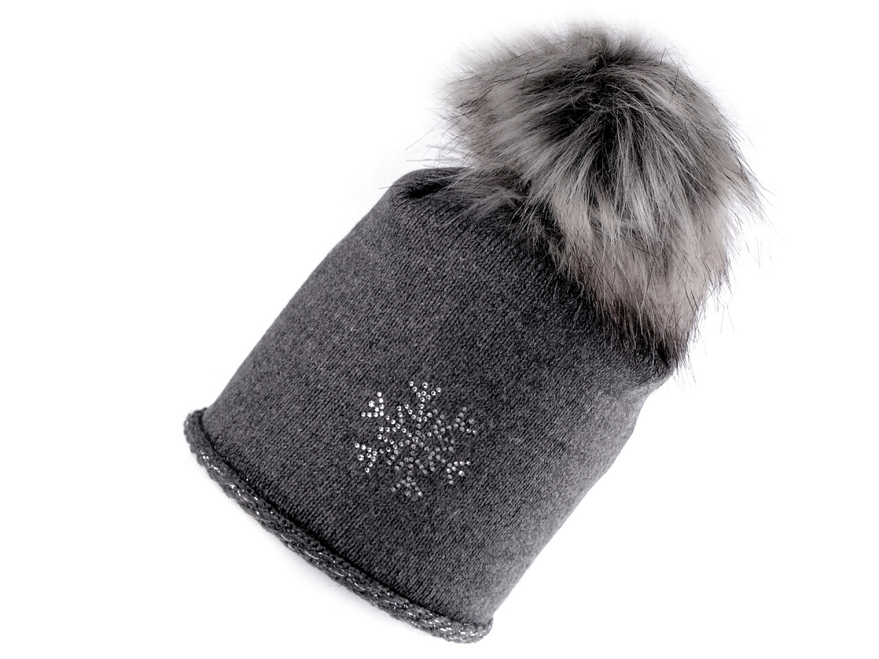 Pletená čepice s třpytivou vločkou z kamínků vás bude hřát celou zimu. Na první pohled zaujme velkou chlupatou bambulí. Uvnitř je čepice podšitá pásem teplého fleecu. Okraj čepice se ozdobně roluje, je protkán třpytivými lurexovými vlákny. Chlupatá bambule imituje pravou kožešinu.