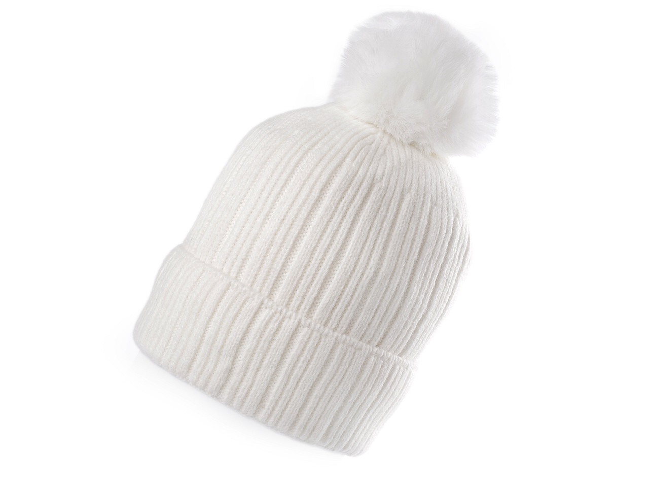 Dámská / dívčí zimní čepice s bambulí Emi Ross - 1 ks - 1 krémová nejsvět.