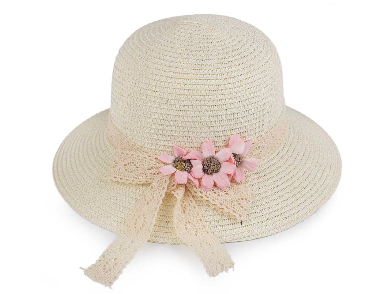 Dívčí letní klobouk / slamák - 1 ks - 1 krémová světlá