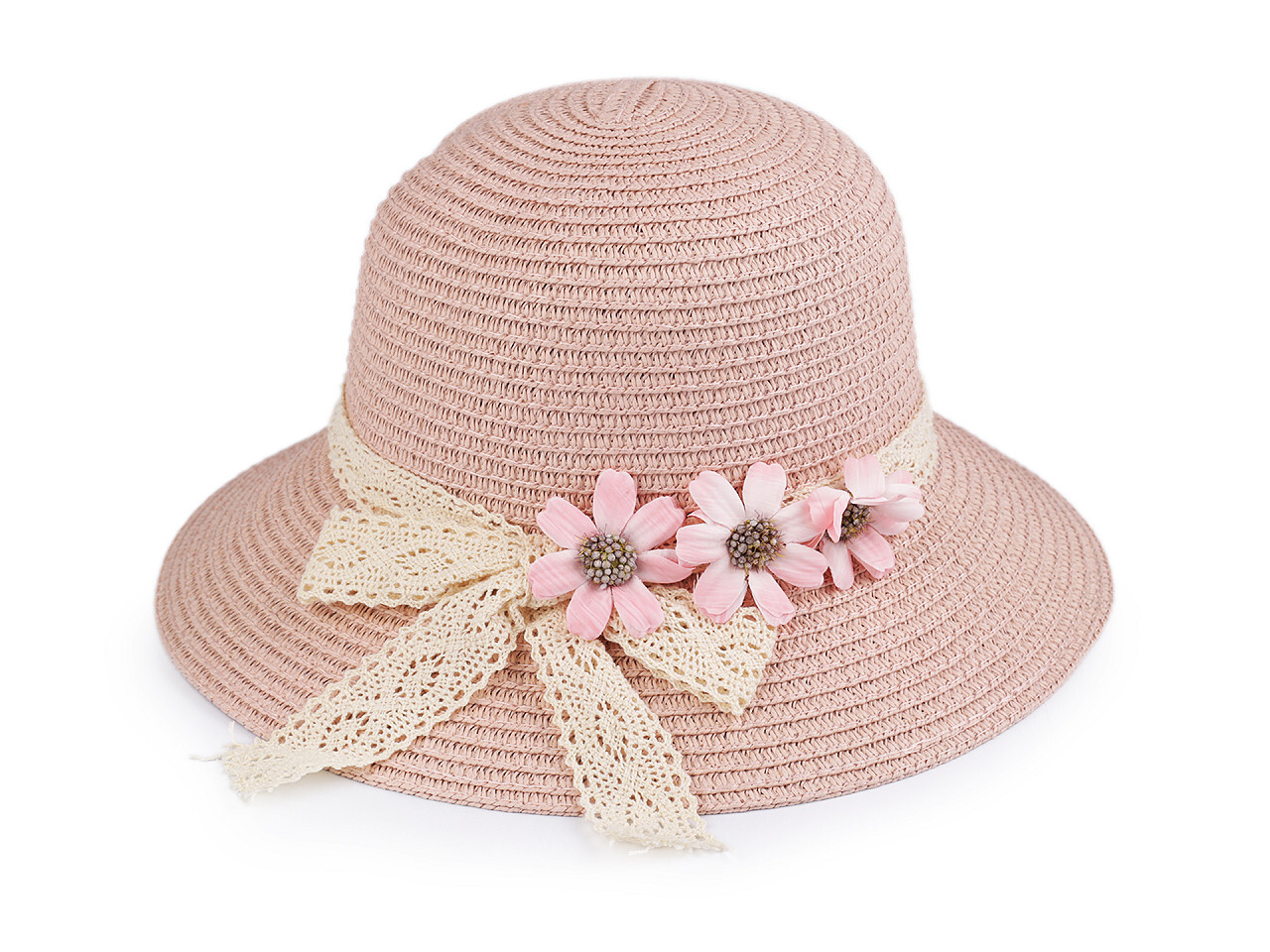 Dívčí letní klobouk / slamák - 1 ks - 5 pudrová