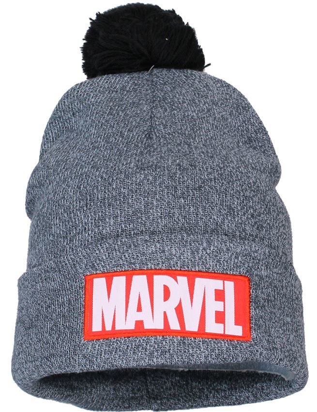 Oficiální zimní pletená čepice z katalogu fashion produktů s logem a grafikou společnosti Marvel.