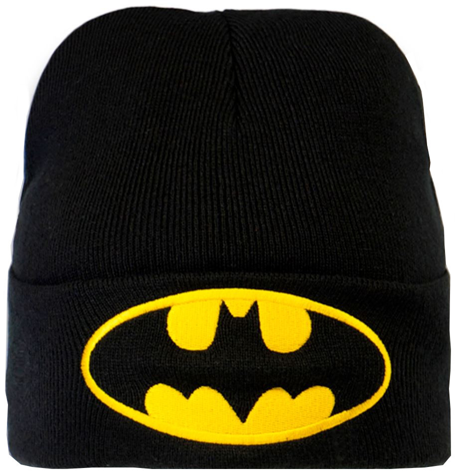 Černo-žlutá zimní čepice s logem komiksového hrdiny Batmana.