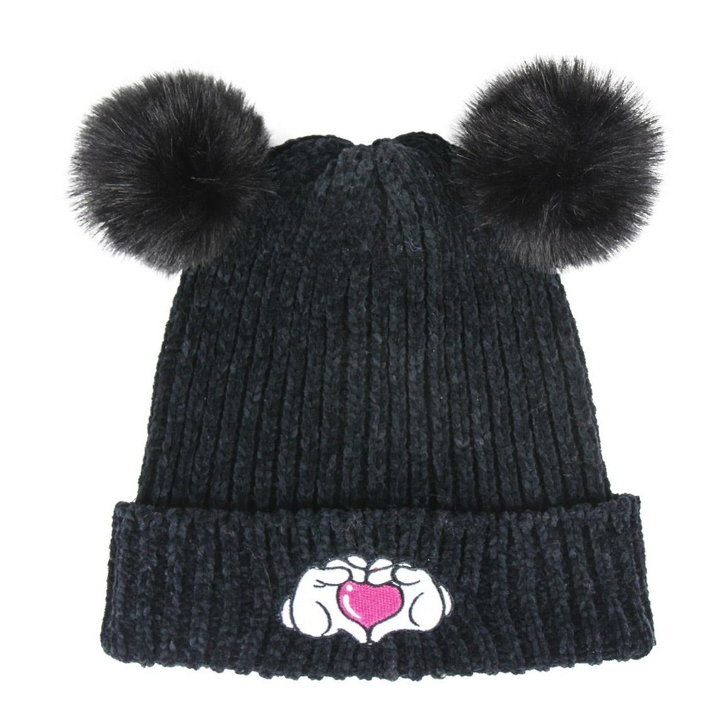 Měkoučká čepice černá s dvěmi bambulemi Disney Minnie. Materiál 100% akryl. Vyrobeno ve Španělsku.