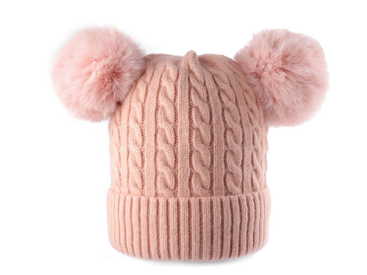 Dámská / dívčí zimní čepice s bambulemi Emi Ross - 1 ks - 4 pudrová