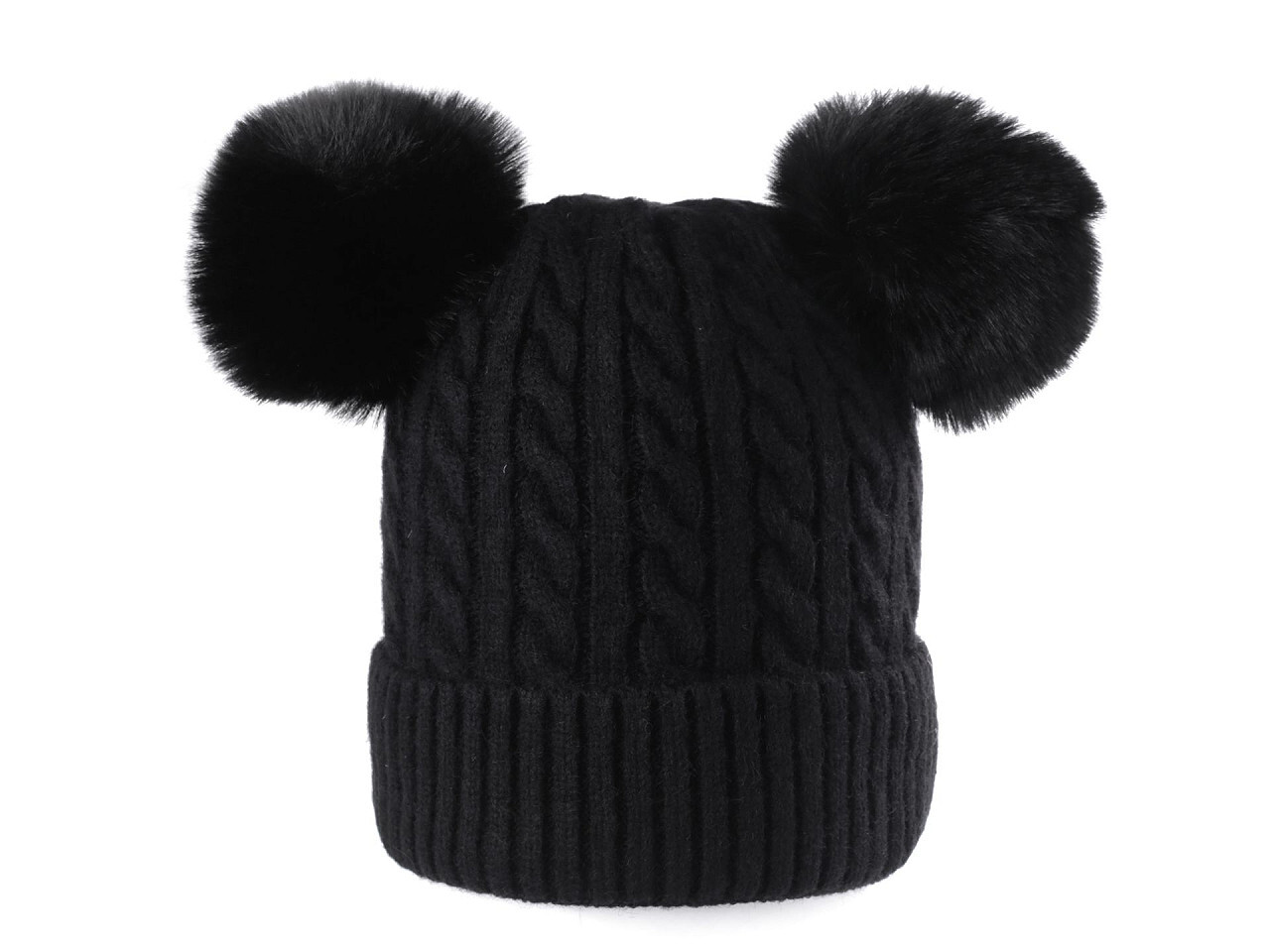Dámská / dívčí zimní čepice s bambulemi Emi Ross - 1 ks - 8 černá