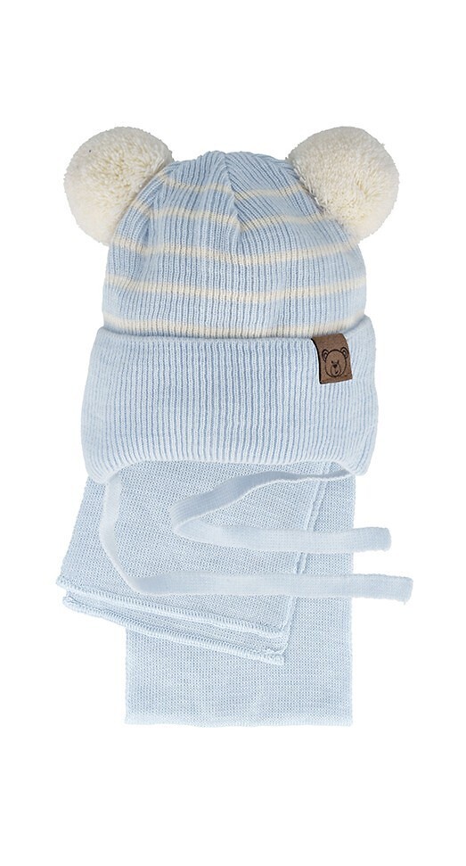 Komplet AJS 48-317 Czapka+szalik chłopięcy błękitny 40-42 cm