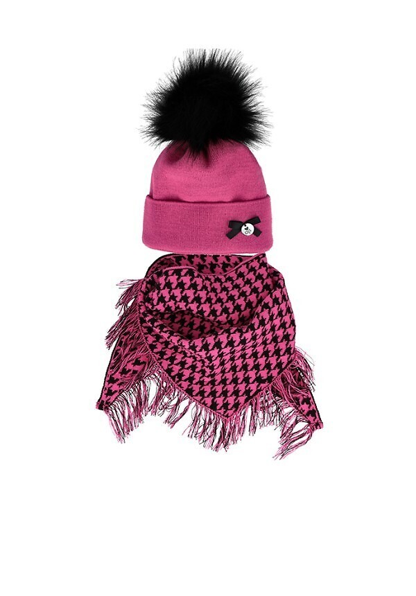 Komplet AJS 48-399 Czapka+chustka dziewczęca różowy 52-56 cm