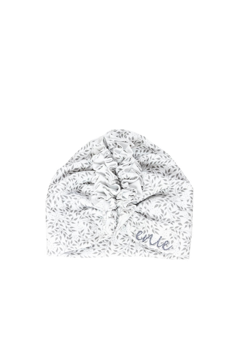 Dětský turban s ozdobnou přední částí ve velikosti pro miminka od 3 do 6 měsíců.