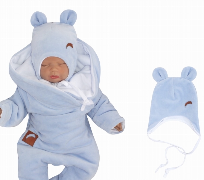 Z&Z Velurová čepice na zavazování s oušky, modrá, 80/86; 80/86 (12-18m)