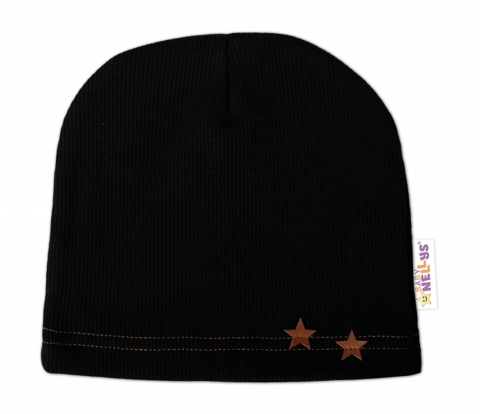 Baby Nellys Žebrovaná čepice Hvězdičky - černá, vel. 80/86; 80/86 (12-18m)