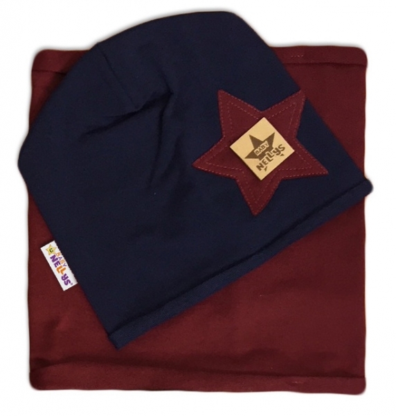 Baby Nellys Bavlněná sada čepička a nákrčník Nelly Star - granát s bordo, vel. 110; 110 (4-5r)