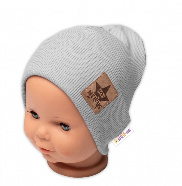 Žebrovaná dvouvrstvá čepice s lemem - šedá, vel. 80/86, Baby Nellys; 80/86 (12-18m)