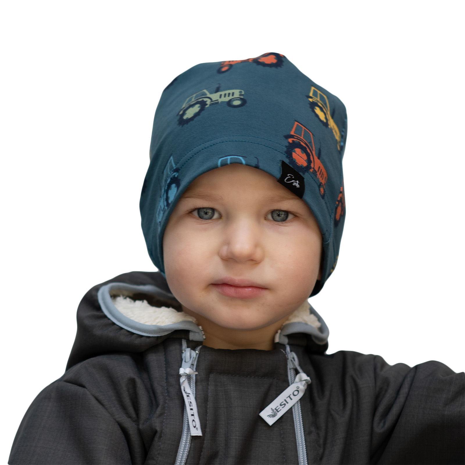 Jarní chlapecká čepice Traktor; Barva: petrolejová; Velikost: 44