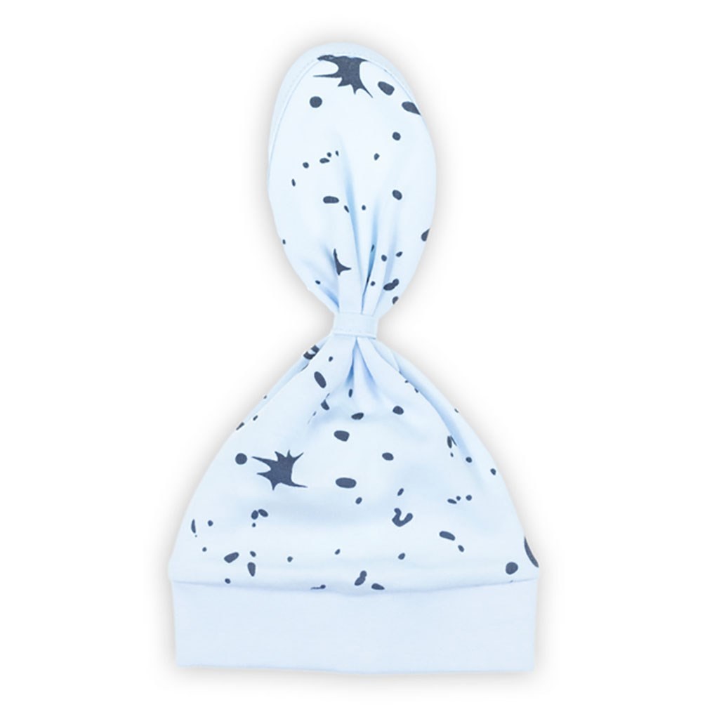 Krásná bavlněná kojenecká čepička-šátek Nicol Max. Čepička je ušitá ve stylu šátku s pružným lemem s potiskem. Díky příjemnému a kvalitnímu materiálu se miminko bude cítit velmi příjemně a pohodlně. Složení: 100% bavlna.