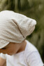 Dětský mušelínový klobouček na hlavu s kšiltem v zelené barvě Ocean Green chrání hlavičku miminka před slunečními paprsky a ouška před větrem. Šátek je termoregulační a zabraňuje přehřátí hlavičky miminka. Rostoucí a vhodný od narození do 3-4 let.