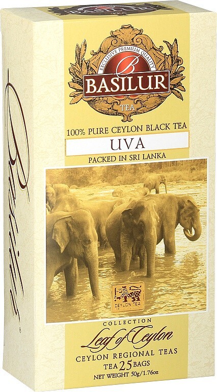 Pěstován na východních svazích centrálního pohoří Srí Lanky, lehce pitelný čaj z oblasti Uva. Černý čaj, porcovaný bez přebaluSložení: černý čaj BOPFNadmořská výška sběru čaje: Mid & High GrownHmotnost: 50g (25x2g) Návod na přípravu: 1 sáček na 250ml šálek, zalít vodou 100°C, louhovat 3-5 minutVýrobce: Basilur Tea Export (PVT) LTD. Baleno na Srí Lance. Dovozce pro ČR: MIX-TEE velkoobchod, s.r.o., Masarykova 235, 250 88 Čelákovice, Česká republika Skladovat v suchu a chladu.
