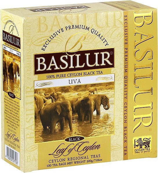 Pěstován na východních svazích centrálního pohoří Srí Lanky, lehce pitelný čaj z oblasti Uva. Černý čaj, porcovaný (bez přebalu)Složení: černý čaj BOPFNadmořská výška sběru čaje: Mid GrownHmotnost: 200g (100x2g) Návod na přípravu: 1 sáček / čajovou lžičku na 250ml šálek, zalít vodou 100°C, louhovat 3-5 minutVýrobce: Basilur Tea Export (PVT) LTD. Baleno na Srí Lance. Dovozce pro ČR: MIX-TEE velkoobchod, s.r.o., Masarykova 235, 250 88 Čelákovice, Česká republika Skladovat v suchu a chladu.