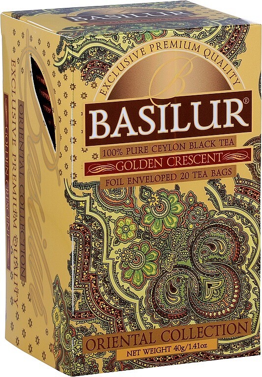 Čaj dokáže zahřát jak tělo, tak smysly a orientální řada vzdává hold právě jeho schopnosti navodit uvolnění a pohodu. Golden Crescent je ryzí představitel srílanských černých čajů. Kus historie a tradice v šálku bohaté chuti. Černý čaj, porcovanýSložení: černý čaj BOPFNadmořská výška sběru čaje: Low GrownHmotnost: 50g (25x2g) Návod na přípravu: 1 sáček na 250ml šálek, zalít vodou 100°C, louhovat 3-5 minutVýrobce: Basilur Tea Export (PVT) LTD. Baleno na Srí Lance. Dovozce pro ČR: MIX-TEE velkoobchod, s.r.o., Masarykova 235, 250 88 Čelákovice, Česká republika Skladovat v suchu a chladu.