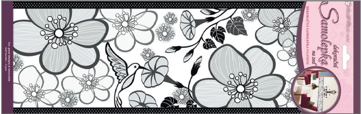 Samolepky na zeď květy velké 3pruhy, 40x15cm