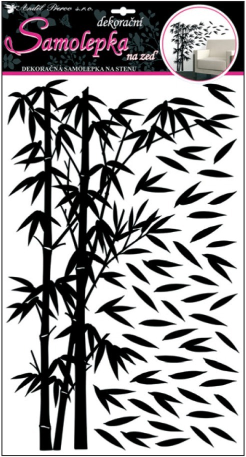 Samolepky na zeď bambus černý s lístky 50x32cm