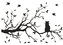 Samolepka na zeď černá větev s kočkou 42 x 60 cm