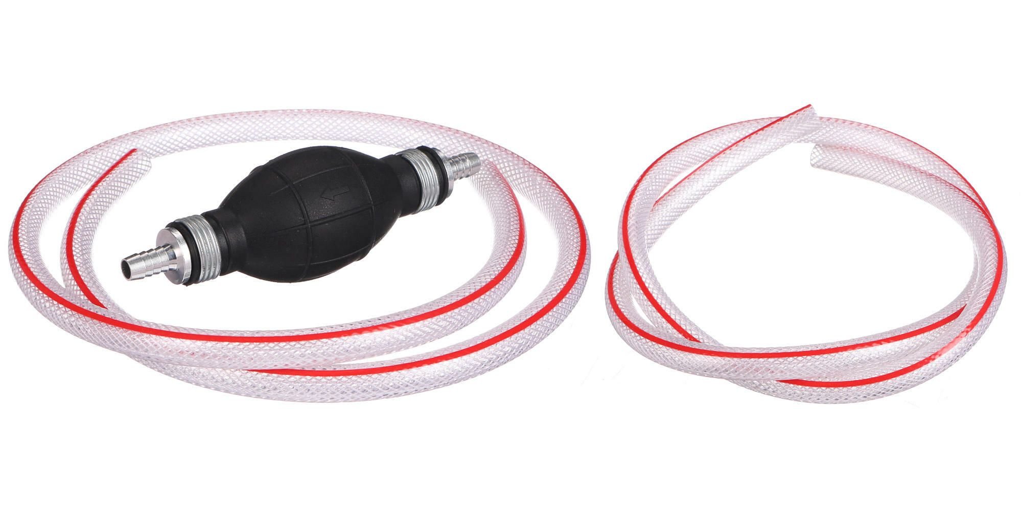 Nemusíte řešit složité nebo elektrické čerpadla - toto ruční řešení je vždy připraveno k použití, kdekoliv ho potřebujete. Perfektně padne k palivovým hadicím s vnitřním průměrem 12 mm a dvě přiložené hadice o délce 1 m vám umožní pohodlnou manipulaci s kapalinami v různých situacích. Je jedno, zda potřebujete přečerpat palivo do nádrže, odsát kapalinu z nádob nebo pracovat v dílně či na zahradě - toto čerpadlo vám výrazně usnadní práci.