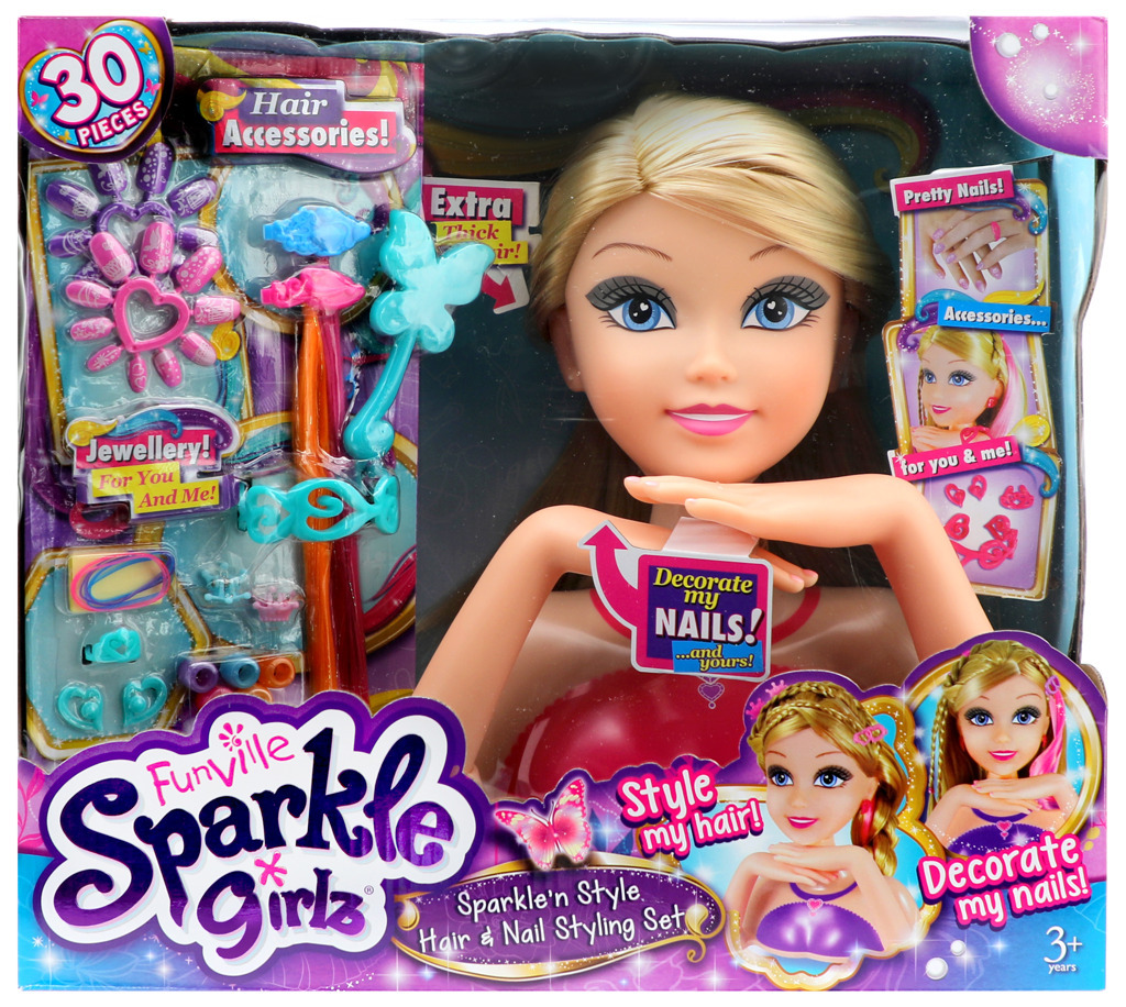 Česací hlava Sparkle Girlz se stylingem nehtů