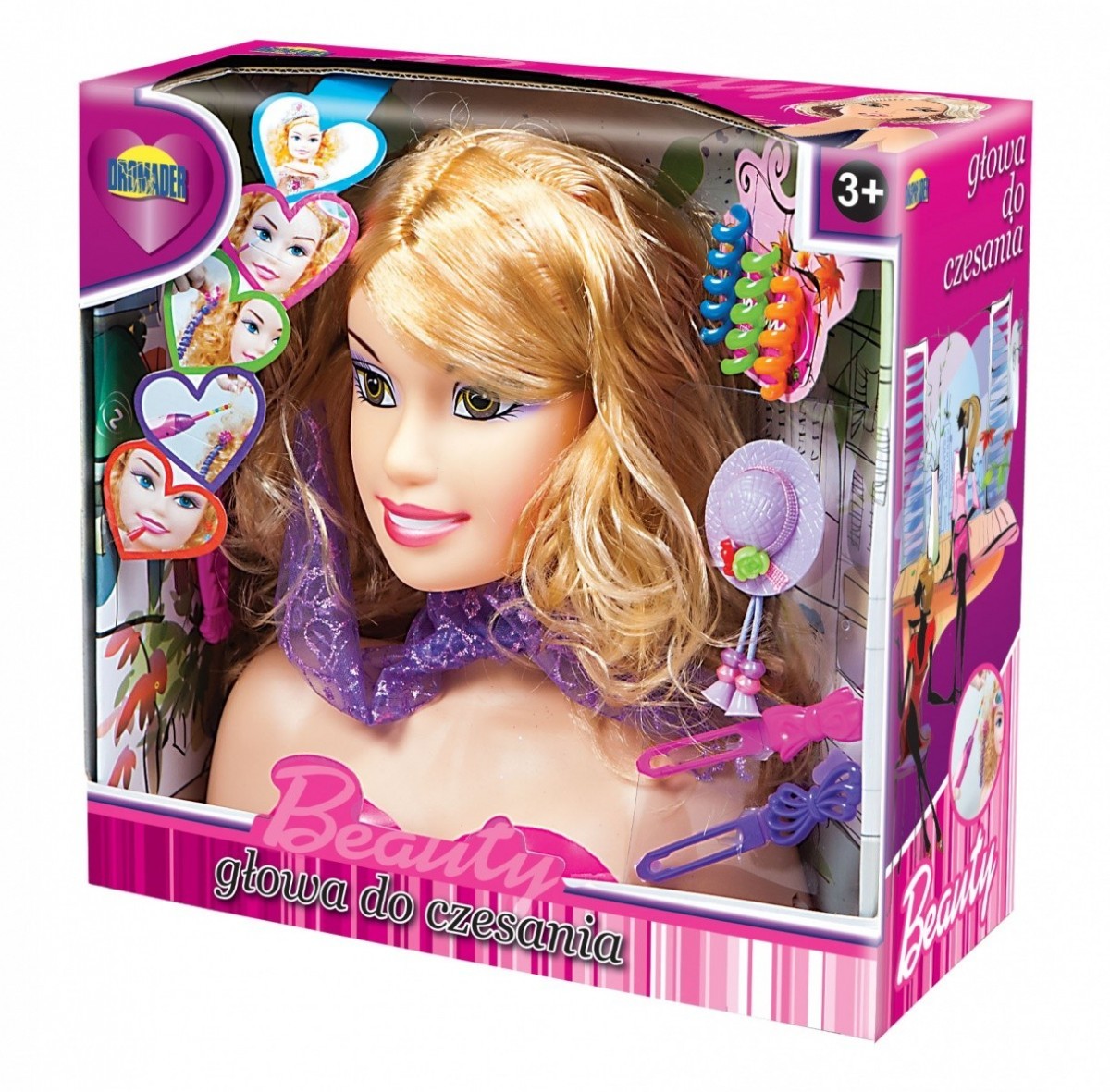 Dromader - Głowa do czesania i stylizacjiW zestawie znajduje się szczotka do włosów i kolorowe spinki. číst celé