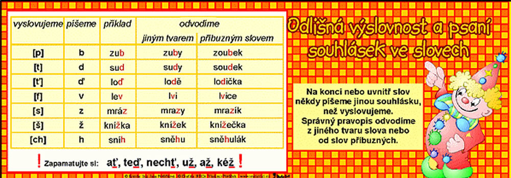 - Obsahuje přehled nejčastějších odlišností v psaní a výslovnosti souhlásek