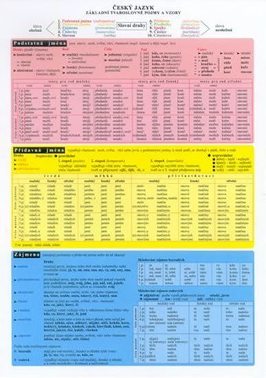 Usnadněte si učení českého jazyka díky přehledné výukové tabulce! Tato praktická pomůcka je ideální pro studenty, učitele i všechny, kdo chtějí mít základní tvaroslovné pojmy a vzory stále na očích.