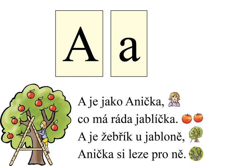 Demonstrační karty s písmeny, básničkami a paměťovými obrázky