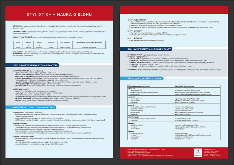 Stylistika, nauka o slohu - Přehledová tabulka učiva