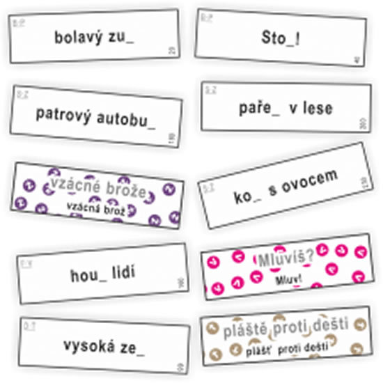 Slovní spojení na 280 kartičkách k procvičení spodoby hlásek na konci slova i ve slově. číst celé