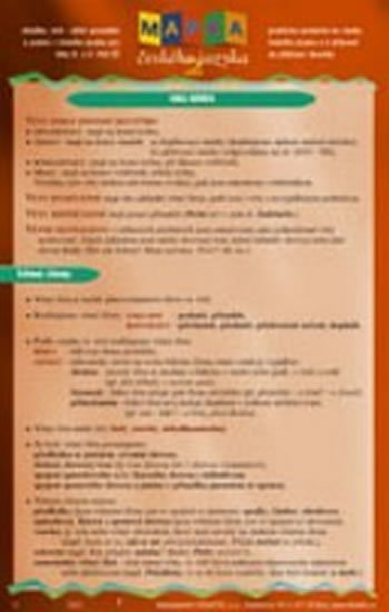Přehledná a přitom podrobná pomůcka se základy gramatiky českého jazyka, nejen pro žáky druhého stupně zš. Nápad i provedení se mi líbí, je to přehledné, skladné, děti si mohou vložit do sešitu a mají kdykoliv po ruce. Nevím ale, proč je vyvedeno v tmavší zelené barvě... Prohlížela jsem si více mapek z této edice a já osobně bych rozhodně upřednostnila bílý základ, případně jen světlý barevný podklad, případně různé barvy pro různé předměty.