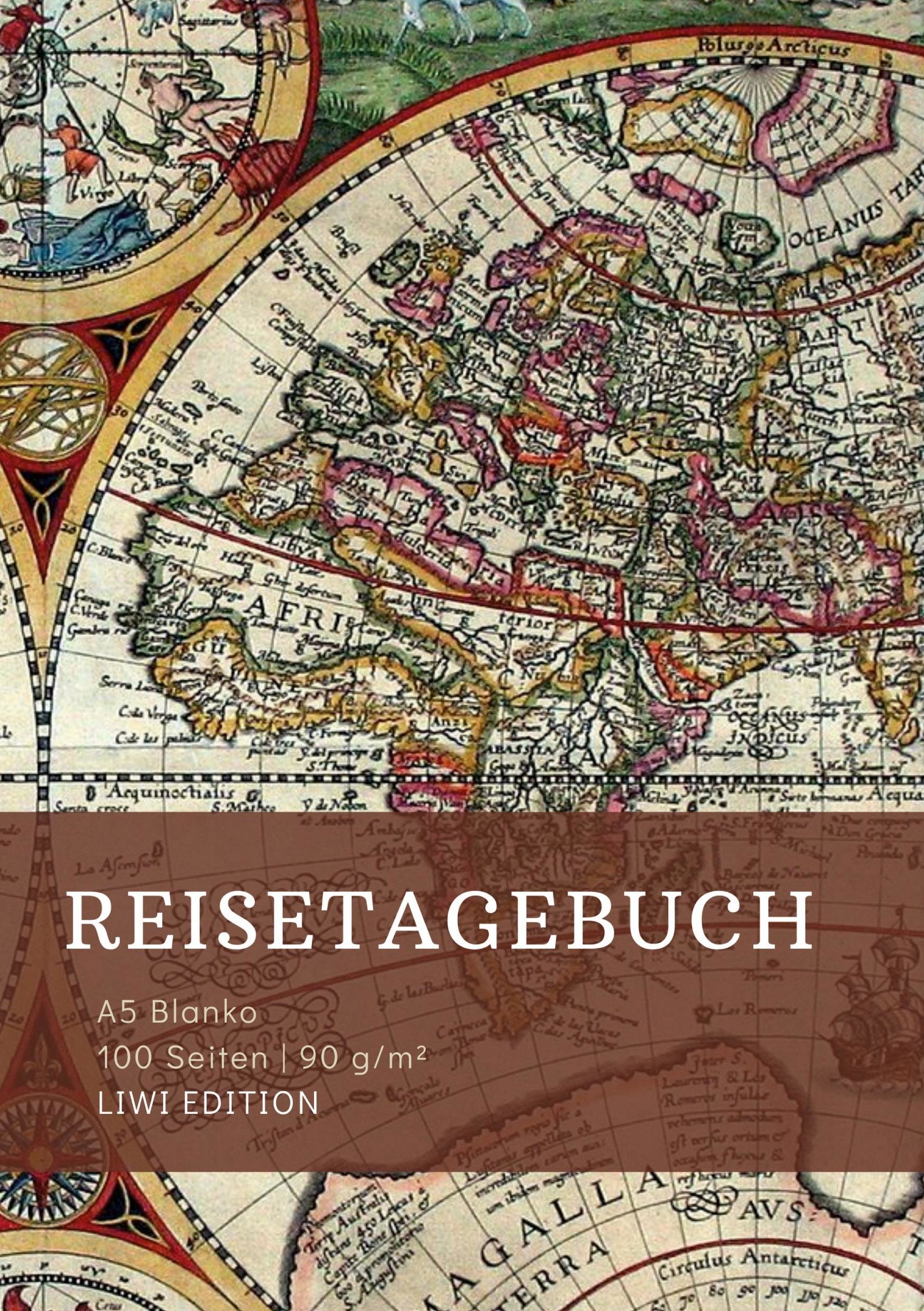 Reisetagebuch zum Selberschreiben - A5 blanko - 100 Seiten 90g/m² - Soft Cover - Motiv Weltkarte - Papier aus nachhaltiger Forstwirtschaft (německy)