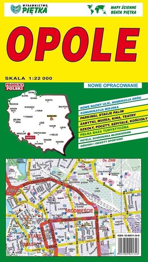 Mapa zawiera:- Nazwy ulic- Sygnalizacja świetlna- Ulice jednokierunkowe- Parkingi, stacje kolejowe- Szkoły, poczty, szpitale- Muzea, kina- Obiekty sportowe- Obiekty zabytkowe- Bazę noclegową i turystyczną
