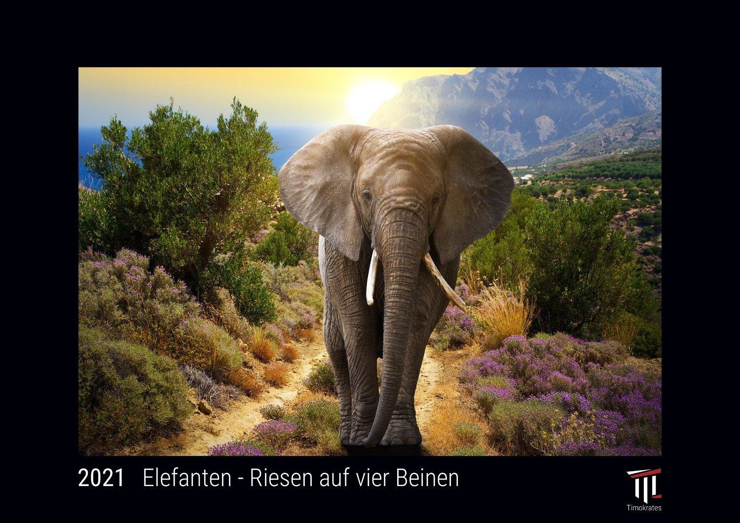 Elefanten - Riesen auf vier Beinen 2021 - Black Edition - Timokrates Kalender, Wandkalender, Bildkalender - DIN A4 (ca. 30 x 21 (německy)