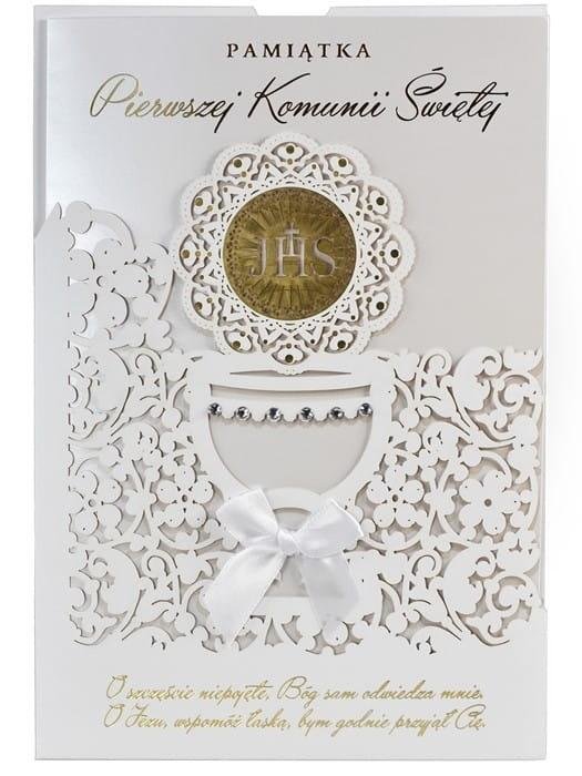 Kartki z serii Primus, to kartki najwyższej jakości, pięknie zdobione m.in złotą lub srebrną folią,tłoczeniami, czy wycinkami laserowymi. Idealne na najważniejsze okazje w życiu, takie jak ślub, komunia. W środku każdej kartki znajdują się dobrane do okazji życzenia, a do kartki dołączona jest dopasowana koperta. Cechy szczególne: wielkość: niestendardowa, prostokątna, kwadratowa, zdobienia: dekoracje ze złotej folii, doklejane koraliki, tłoczenia koperta: dopasowana w komplecie, wnętrze kartki: życzenia w środku, okazja: komunia.