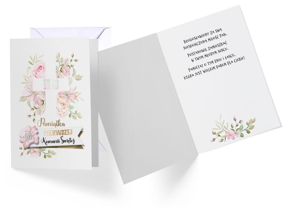 Kartka B6 z ozdobnej serii Dream Cards na Komunię - nieduża, ale robi wrażenie dzięki atrakcyjnej kolorystyce i ciekawym zdobieniom. To idealny wybór łączący przyjazną cenę z jakością. Cechy szczególne: wielkość: B6, 16.6 x 11.7 cm po złożeniu, koperta: w zestawie, kolorowa, zdobienia: różnorodne, bogate (w zależności od wzoru: przyklejane dekoracje, elementy biżuteryjne, odstawniki, brokat metaliczne folie, tłoczenia itp.), okazja: Komunia.