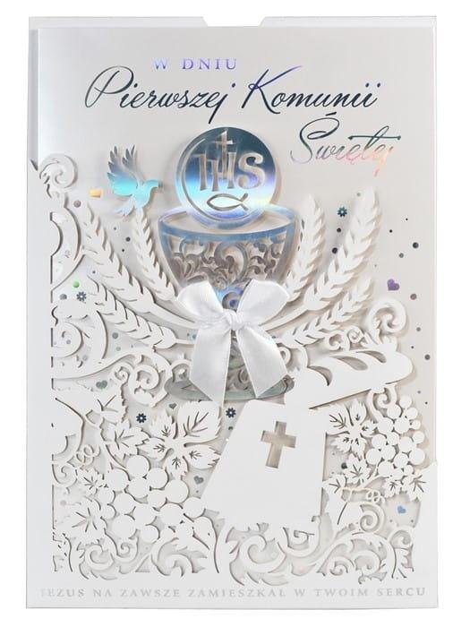 Kartki z serii Primus, to kartki najwyższej jakości, pięknie zdobione m.in złotą lub srebrną folią,tłoczeniami, czy wycinkami laserowymi. Idealne na najważniejsze okazje w życiu, takie jak ślub, komunia. W środku każdej kartki znajdują się dobrane do okazji życzenia, a do kartki dołączona jest dopasowana koperta. Cechy szczególne: wielkość: niestendardowa, prostokątna, kwadratowa, zdobienia: dekoracje ze złotej folii, doklejane koraliki, tłoczenia koperta: dopasowana w komplecie, wnętrze kartki: życzenia w środku, okazja: komunia.