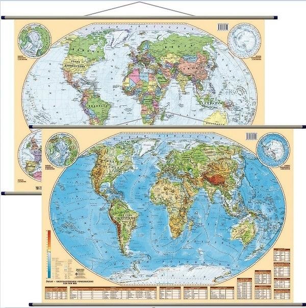 Świat mapa dwustronna polityczno-fizyczna została opracowana przez renomowane wydawnictwo EkoGraf. Idealna do domu, szkoły jaki i do biura.Po jednej stronie mapa ukazuje ukształtowanie powierzchni Świata w skali 1:60 000 000 oraz oba bieguny w skali 1:102 000 000. Dodatkowo mapa zawiera tabele z...