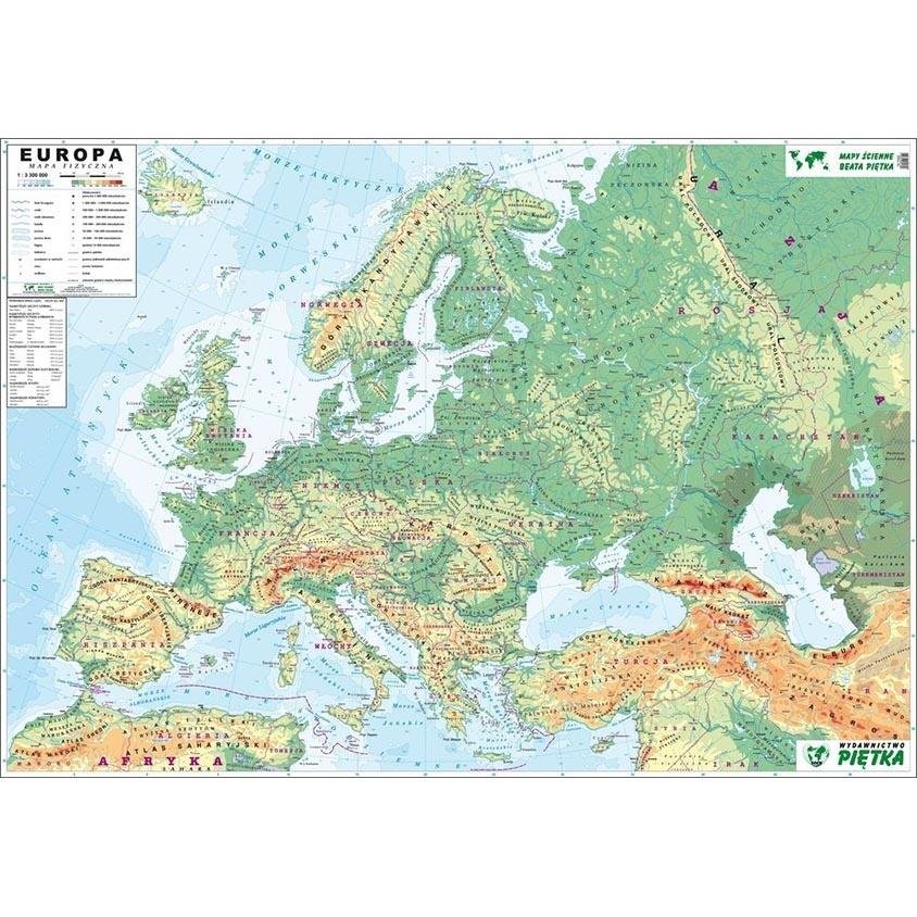 Mapa ścienna Europy - fizyczna/konturowa to bardzo ciekawa propozycja Wydawnictwa Piętka. Z jednej strony naniesiono na mapę jak wygląda ukształtowanie naszego kontynentu ze wszelkimi szczegółami takimi jak głębokości, wysokości czy wulkany i szczyty, z drugiej strony mamy mapę konturową bez opisów, na której można sprawdzić swoją wiedzę dotyczącą tego tematu. Jest to więc doskonała propozycja dydaktyczna, jak i okazja dla wszystkich, by skontrolować swoją znajomość Europy.