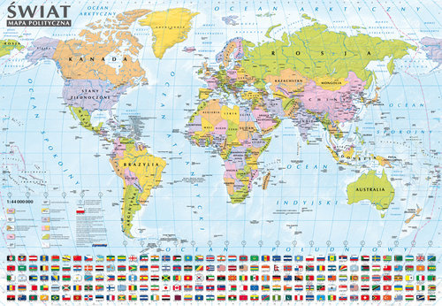 Mapa - Świat Polityczna. 1:44 000 000 Listwa (polsky)