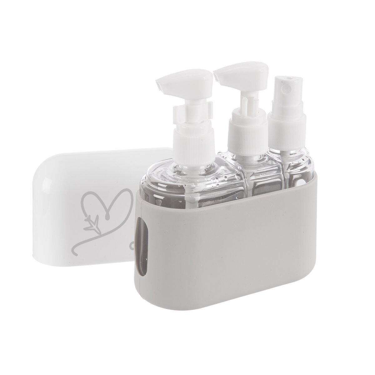 Tato praktická souprava lahviček v elegantním pouzdře vám umožní vzít si s sebou jen potřebné množství šampónů, kondicionérů, krémů nebo gelů a přitom splňuje veškerá kritéria pro příruční zavazadla do letadla. Díky různým typům lahviček - s rozprašovačem i pumpičkou - snadno přelijete své oblíbené hygienické přípravky a zabráníte nežádoucímu vylití díky bezpečnostním pojistkám.
