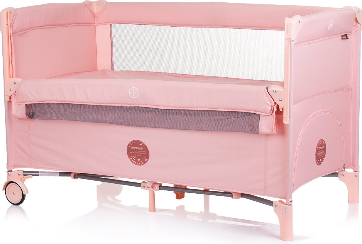 CHIPOLINO Postýlka cestovní se sklopnou bočnicí Relax Flamingo lněný vzor