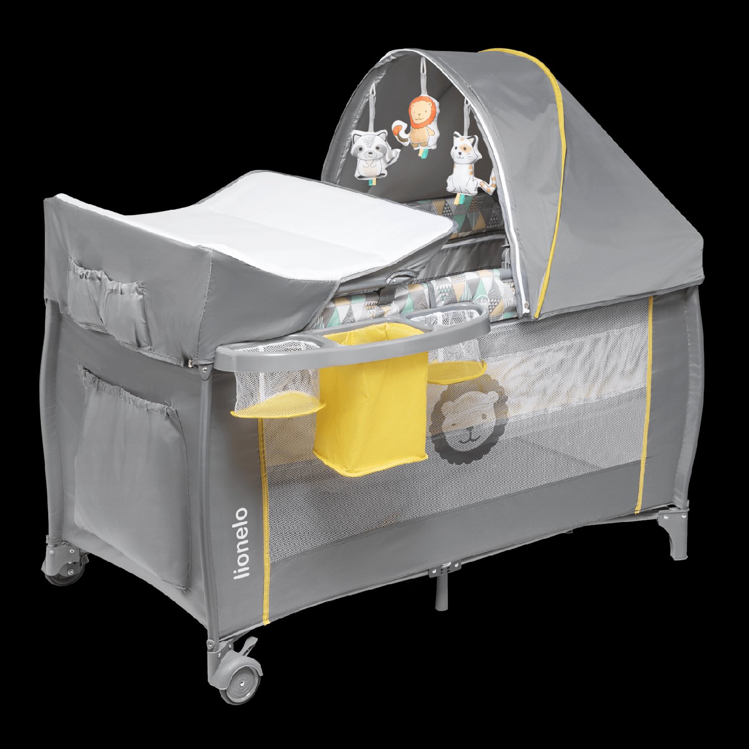 Součástí je velká moskytiéra a hrazdička s plyšovými hračkami a stříška