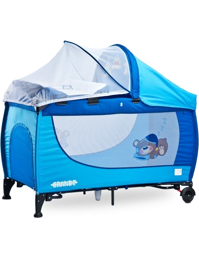 Luxusní cestovní postýlka CARETERO Grande 2016 s novým moderním vzhledem, větší přebalovací podložkou a pevnějším materiálem. Je určena pro děti do 15 kg. Charakteristika: - systémem Double Lock (znemožňuje samovolné složení)- stříška s hračkami a sítí proti hmyzu- vibrace- světlo- hrací strojek- dvě výšky podlahy (velmi praktické pro malé miminka)- velmi měká matrace- boční dvířka na zip- přebalovací pult- praktická kapsa na suchý zip- kolečka s brzdou pro snadnější manipulaci- houpací lišty- taška v barvě postýlky- splňuje evropskou normu EN 716Rozměry: dxšxv cca 124x65x80 cmmatrace: cca 120x60 cmRozměry ve složeném stavu: cca 79x28x24 cmváha 13 kgvýška matrace cca 1 cm
