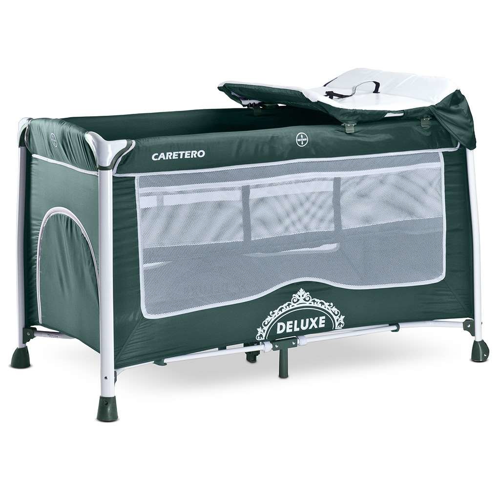 Cestovní postýlka CARETERO Deluxe je vyrobena z nejkvalitnějších materiálů. Má moderní vzhled a velmi zajímavé barvy. Je určena pro děti do 15 kg.Charakteristika:- systém Double Lock (znemožňuje samovolné složení)- síť proti hmyzu- dvě výšky podlahy (velmi praktické pro malé miminka)- velmi měkká matrace- boční dvířka na zip- přebalovací pult z PVC- diskrétně ukryté kolečka na zadních nohách, pro snadnou manipulaci- taška v barvě postýlky- praktická taška na drobnosti umístěna na boku postýlky- barevný potisk na obou stranách postýlky- postýlka je stabilní, díky pevným nohám- postýlka je v souladu s evropskou normou N716Rozměry: cca 136x64x76 cmRozměry matrace: cca 120x60 cmRozměry ve složeném stavu: cca 82x22x23 cmVáha: 11,3 kgVýška matrace: cca 1 cm