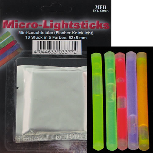 Tyto mikrotyčinky jsou velké pouhých 6 x 50 mm a nabízíme je v pěti různých zářivých barvách, které můžete snadno kombinovat a využít tak přesně podle vaší potřeby. Balení obsahuje 10 kusů, což je ideální počet, aby vám nikdy nechybělo dostatečné množství svítidel po ruce.