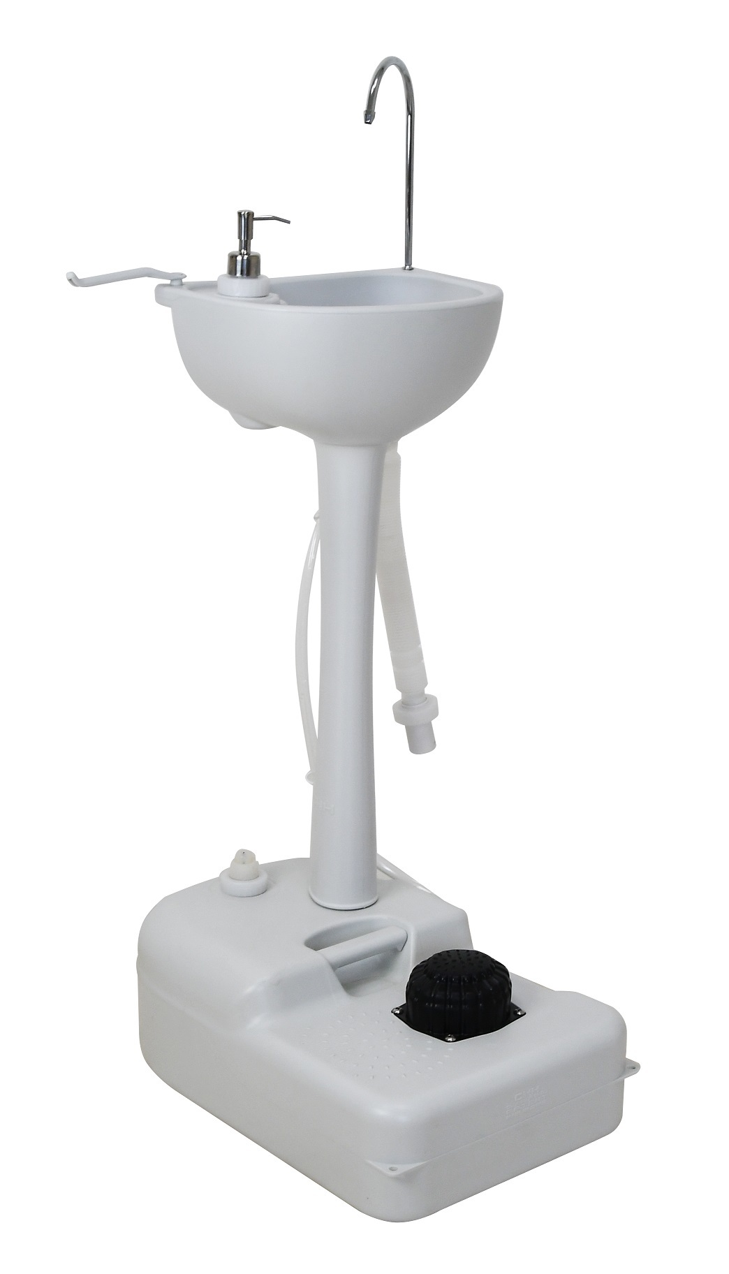 Přenosné umyvadlo CALTER se stojanem využijete nejen na chatě, ale také v kempu, karavanu nebo kdekoliv jinde, kde jsou kladeny zvýšené požadavky na hygienu. A není možnost zajištění stálého přístup k vodní přípojce. Využití umyvadla je velice hygienické, jelikož stlačováním nožní pumpy na zásobníku (tedy bez dotyku rukou) dochází k vytrysknutí vody.